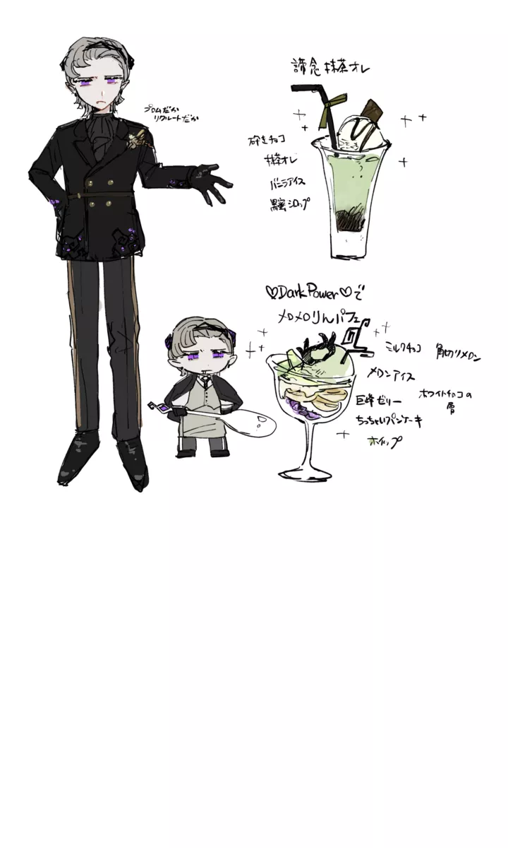 チャームポイント│ 透明感ある肌、伏し目がちで長いまつ毛の目元、ちっちゃい角と犬歯、指4本、綺麗な立ち姿