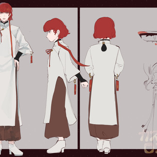 ファッション・こだわり│ チャイナ感を全面に押し出す服装。髪色と同じ真っ赤なメイクとヒールのあるショートブーツで気を引き締める。 ほんとうは無地の黒Tシャツとジーンズとかで過ごしたい。